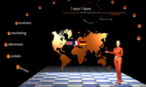Bei diesem Projekt habe ich das Intro einer Homepage erstellt. Eine Frau betritt eine Bühne und läuft auf den Betrachter zu. Daraufhin erscheint eine Weltkarte, auf welcher der Besucher aufgefordert wird eine Sprache auszuwählen. |